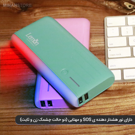 پاوربانک لمون 8000 با ظرفیت اسمی 8000 میلی‌آمپرساعت محصول برند «Lemon» است. این محصول با دو درگاه خروجی امکان شارژ هم‌زمان دستگاه‌هایتان را به شما می‌دهد. باتری این شارژر از نوع لیتیومی است و ولتاژ ورودی و خروجی این شارژر همراه 5 ولت است. بنابراین اگر دستگاه‌های 5 ولتی مانند گوشی، تبلت یا دوربین دیجیتال یا پخش‌کننده همراه دچار مشکل کمبود شارژ شد و به برق شهری یا خودرو دسترسی نداشتید، این پاور بانک مشکل شما را حل می‌کند. شدت‌جریان ورودی آن 1.2 آمپر است و درمجموع 2.1 آمپر می‌توان از آن خروجی گرفت. با این شدت‌جریان 2.1 که برای تبلت‌ها مناسب است، گوشی‌های موبایل سریع‌تر از حالت معمولی شارژ می‌شوند. از روی نشانگر LED آن می‌توان میزان شارژ باقی‌مانده را فهمید و یک چراغ LED بزرگ روی آن وجود دارد. این چراغ هم مانند چراغ‌قوه عمل می‌کند هم می‌تواند حالت هشداردهنده SOS داشته باشد. علاوه‌براین می‌توانید چشمک‌زن قرمز و آبی را نیز فعال کنید. بدنه‌ی آن از پلی کربنات و پلاستیک ABS ساخته‌شده است و جای خط و خش به‌آسانی روی آن نمی‌افتد.