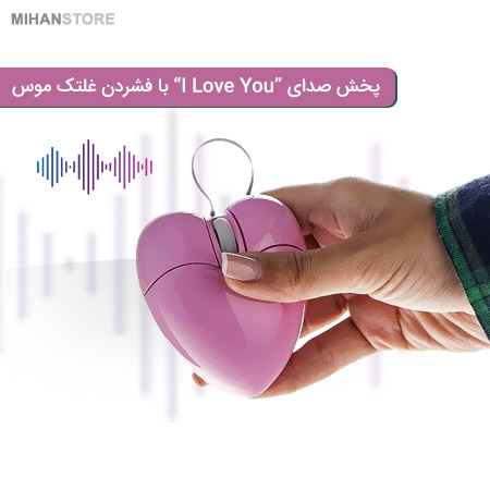 موس سخنگو طرح LOVE دارای کلیکی هستند که با فشار دادن آن صدای I LOVE YOU به گوش آن کس که دوستش دارین می رساند. هدیه ای برای این که همیشه به یادتان باشند. موس سخنگو طرح LOVE با تمامی سیستم عامل ها سازگاری دارد و هینمطور نوع رابط آن با پورت USB است و قابلیت جمع شدن سیم اتصال برای فضاهای کوچک دارا میباشد. موس سخنگو طرح LOVE طول کابل آن 80 سانتی متر است و نوع ماوس از نوع لیزری ست و به راحتی بدون ماوس پد روی میز قابل استفاده می باشد.