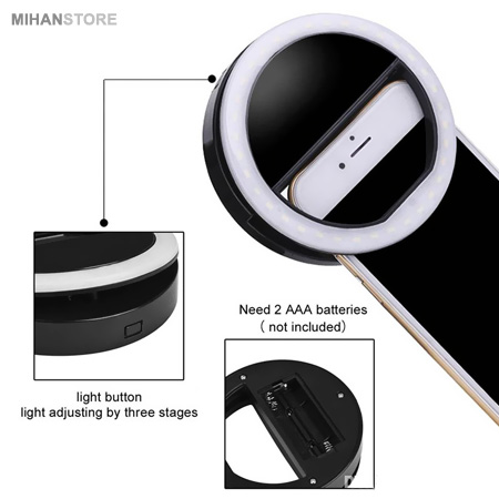 یکی از ویژگی های گوشی های تلفن همراه که بسیار مورد توجه عموم می باشد و در هنگام خرید موبایل به آن توجه ویژه ای می شود، قابلیت و کیفیت دوربین های موبایل است، چراکه با استفاده از گوشی های دارای دوربین باکیفیت، می توان به راحتی و بدون نیاز به دوربین های حرفه ای ، عکاسی و یا فیلم برداری کرد. از سویی دیگر این دوربین های موبایل ها بودند که گرفتن عکس های زیبا و منحصر به فرد سلفی را در میان همه رواج دادند. ولی استفاده از دوربین موبایل ها یک ایراد بزرگ دارد و آن هم عدم وجود نور کافی در شب و یا نقاط تاریک هنگام عکاسی و تصویر برداری است که بسیاری از تولید کنندگان تلفن همراه در جهان برای رفع این مشکل سعی کردند این مشکل را با تعبیه فلش و چراغ قوه در کنار دوربین رفع کنند که چندان کارآمد واقع نگردید. اما این بار ما محصولی را به شما معرفی و عرضه می داریم که این مشکل را یک بار برای همیشه حل خواهد کرد. رینگ لایت سلفی موبایل یک محصول با طراحی بسیار جالب است که به شما این امکان را می دهد که در تاریکی شب و یا نقاطی با نور کم به راحتی عکس بگیرید، فیلم برداری کنید و لذت ببرید. این محصول طوری طراحی شده است که به آسانی بر روی موبایل و تبلت شما نصب می گردد و بسیار سبک است. رینگ لایت سلفی موبایل دارای 18 عدد LED است که در سه حالت مختلف نوری قابل تنظیم است، بر این اساس شما می توانید بنا به شرایط مکانی نور آن را تنظیم نمایید. رینگ لایت سلفی موبایل قابل نصب بر روی تمام گوشیهای موبایل و تبلت است و این بدان معناست که شما برای استفاده از این محصول هیچ محدودیتی ندارید و برای استفاده، تنها کافیست آن را بر روی گوشی و تبلت وصل نمایید و از استفاده از آن نهایت لذت را ببرید. علاوه بر فلش شما می توانید از این محصول به عنوان یک چراغ قوه قدرتمند نیز استفاده کنید، برای این کار تنها کافیست آن را روشن نمایید تا با چشمان خود مشاهده نمایید که قدرت نور آن چقدر است.