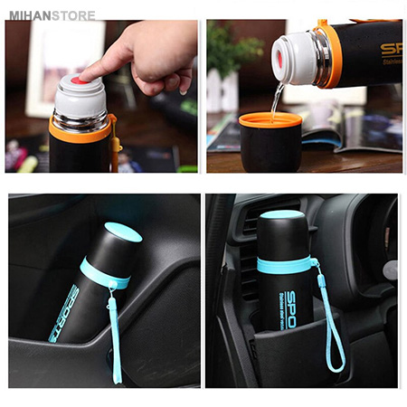 از لحاظ ظاهر، این محصول دارای ظاهری مدرن و متفاوت نسبت به نمونه های کلاسیک، و با یک طراحی شکیل تر، مطابق سلیقه ی افراد خاص پسند است. روش نوشیدن مایعات در آن بسیار ساده و به وسیله ی درب آسان نوش تعبیه شده روی عایق مهیا شده است و بدین ترتیب علاوه بر سهولت در نوشیدن بدون نیاز به باز کردن پیج دهانه، نشتی و ریزش مایعات نیز به صفر می رسد. فلاسک نیم لیتری استیل Sports دارای یک دسته ی متحرک جمع شونده همراه با یک بند است که علاوه بر سهولتِ حمل و نقل، فضای کمی را نیز اشغال می کند و طراحی درب محصول به شکل یک لیوان بزرگ، علاوه بر دسترسی دائمی و حمل آسان، نیاز شما به لیوان مجزا را مرتفع می کند.با توجه شروع شدن فصل تابستان و شروع تعطیلی ها ،بسیاری از خانم ها و آقایان ترجیح میدن که از این تایم برای رفتن به باشگاه استفاده کنند و یا حداقل پیاده روی رو از دست ندهند. امروز به شما فلاسک استیل رو به معرفی میکنیم که برای همراه داشتن انواع نوشیدنی های گرم و سرد بسیار مناسبه و چون ابعاد خوبی داره میتونه هر جایی همراهتون باشه . درب رویی این فلاسک به صورت یک لیوان دسته دار هست که شما رو از همراه داشتن لیوان جداگانه بی نیاز میکنه . ظرفیت این فلاسک 500 میلی لیتر هست و راه خروج مایعات به صورت ضامنی هست که استفاده از اون رو راحت میکنه ...