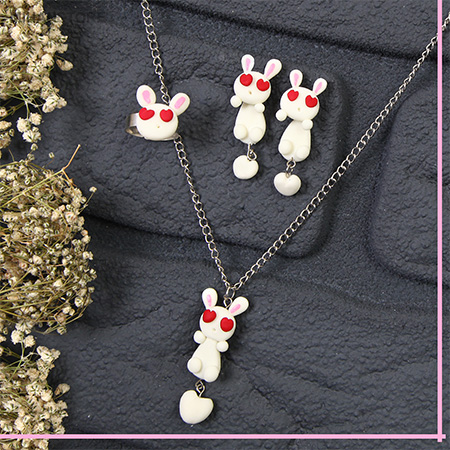 نیم ست شیک گردنبند و گوشواره و انگشتر پونی تماما دست ساز بوده و با استیل ضد حساسیت ارائه شده.