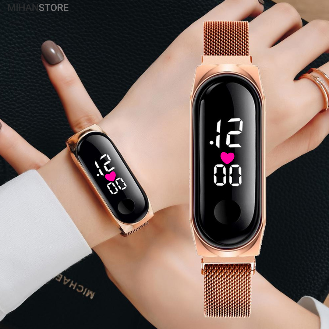 ساعت مچی LED طرح شیائومی یکی از پرفروش ترین ساعت های مچی در بازار جهانی به شمار می رود. ساعت مچی LED طرح شیائومی دارای صفحه ی نمایش دیجیتالی بوده و زمان لمس کردن صفحه ساعت، صفحه نمایش محصول با جلوه ویژه خاصی و با چراغ های LED سفید (یخی) رنگ ساعت را برای شما نمایش می دهد. این ساعت امکان نمایش تقویم روز را نیز دارد. ویژگی دیگر این محصول بند مگنتی و بسیار شیک آن است که قفل آن هرجایی که شما تنظیم کنید به صورت آهنربایی به بند زیرین متصل خواهد شد.