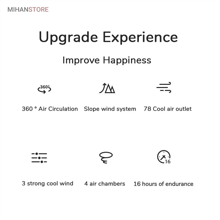 این پنکه همراه به وسیله شیارهای متعددی که روی بدنه خود دارد میتواند سر، صورت و گردن شما را خنک کند و شما را از یک هوای گرم نجات ببخشد. این فن راه اندازی سختی هم ندارد و بهراحتی با فشردن تنها یک دکمه فعال خواهد شد. همان دکمه میتواند دما را برای شما کم و زیاد هم کند. سرعت این پنکه در سه حالت قابل تنظیم است که میتوانید بنا به نیازتان و میزان گرما از آنها استفاده کنید. موتور این پنکه پر قدرت بوده و بیصدا است. این پنکه با اتصال سیم usb به یک شارژر شارژ میشود و نیازی به باطری با سیم همراه ندارد، از این رو شما میتوانید از این پنکه گردنی همراه در هرمکانی که دوست دارید استفاده کنید. با توجه به جنس و وزن کم این محصول اصلا ضرری را به گردن شما متحمل نمیشود. این پنکه به راحتی با زاویه صورت قابل تنظیم است. از طرفی این پنکه بازوهای قابل انعطاف داشته و منعطف است. بنابراین اندازه دلخواه را میتوانید به راحتی تنظیم کنید.