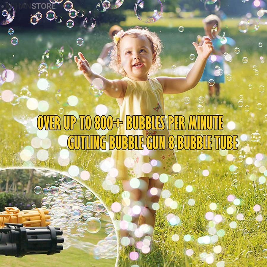 تفنگ الکتریکی حباب ساز BUBBLE GUN دارای 8 سوراخ است که می تواند صد ها حباب را در دقیقه در هوا پراکنده کند. تفنگ حباب ساز باتری خور بوده و با سه عدد باتری قلمی کار میکند. جنس بدنه این محصول از پلاستیک غیر سمی ساخته شده و از مقاومت خوبی برخوردار است. طراحی ابتکاری و جدید این مسلسل حباب ساز نیاز کودکان به تفریح را برآورده می کند و توجه آنها را به خود جلب می نماید. این دستگاه حباب ساز بهترین گزینه برای وقت گذراندن والدین با فرزندانشان می باشد و روابط عاطفی بین آنها را تقویت می کند. دستگاه حباب ساز موجود برای فعالیت های داخل و خارج از منزل مناسب است. طراحی جالب و منحصر به فرد اسلحه Gatling باعث توسعه ی تخیل و خلاقیت کودکان می شود و می تواند به عنوان هدیه برای کودکان سه سال به بالا استفاده شود. به علت ساختار محکم این محصول مایع به هیچ عنوان نشت نمی کند. سرعت پخش حباب نیز بسیار روان است و گیر نمی کند. برای کودکان بسیار راحت است که آن را با یک دست نگه دارند. رنگ حباب روشن است و بی بو است و البته بعد اتمام مایع این محصول خودتان هم می توانید به آسانی مایع حباب را با استفاده از آب و صابون مایع تولید کنید.