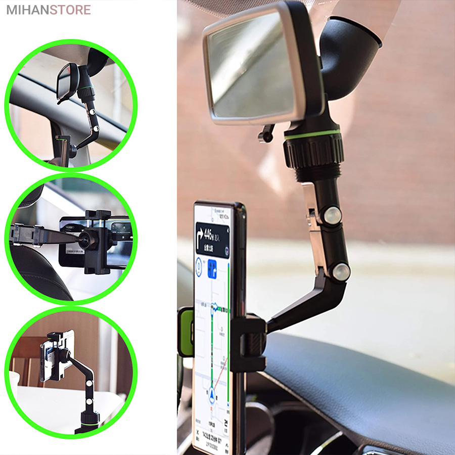 هولدری که به تازگی وارد بازار شده، برای اتصال به آینه دید عقب اتومبیل طراحی شده است. این هولدر موبایل به صورت معلق از بالا در اختیار کاربر قرار می‌گیرد. این یک مزیت برای راننده است، تا بدون اینکه حواسش پرت شود بتواند صفحه نمایش موبایل را ببیند. شما می‌توانید هولدر موبایل آینه ماشین را در ارتفاع مناسب تنظیم کنید و به راحتی از آن استفاده کنید. یک گزینه بسیار مناسب برای رانندگان تاکسی و تمامی کسانی که زمان زیادی را در خودرو سپری می‌کنند.