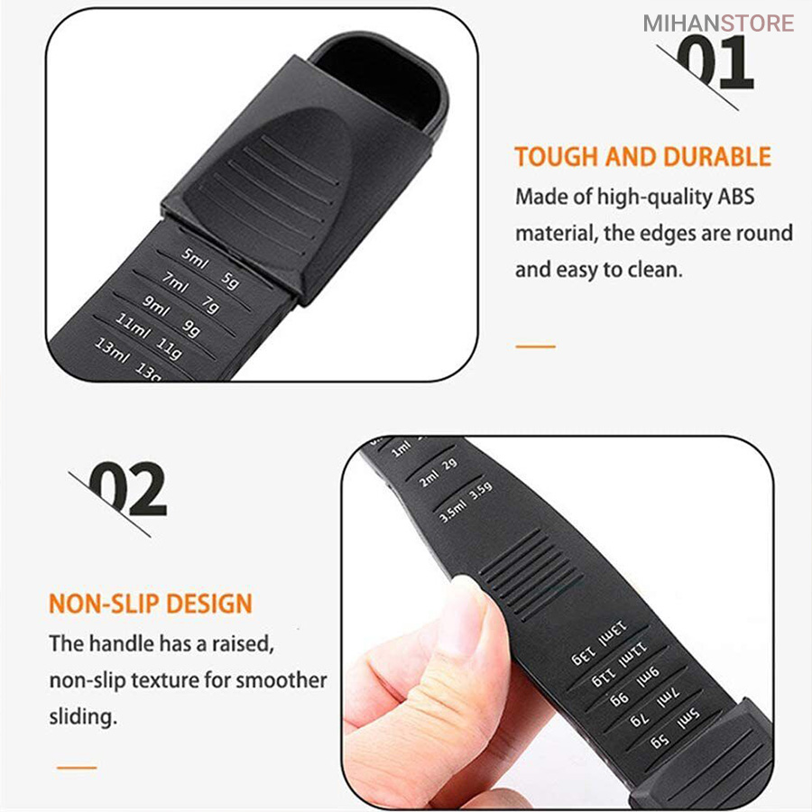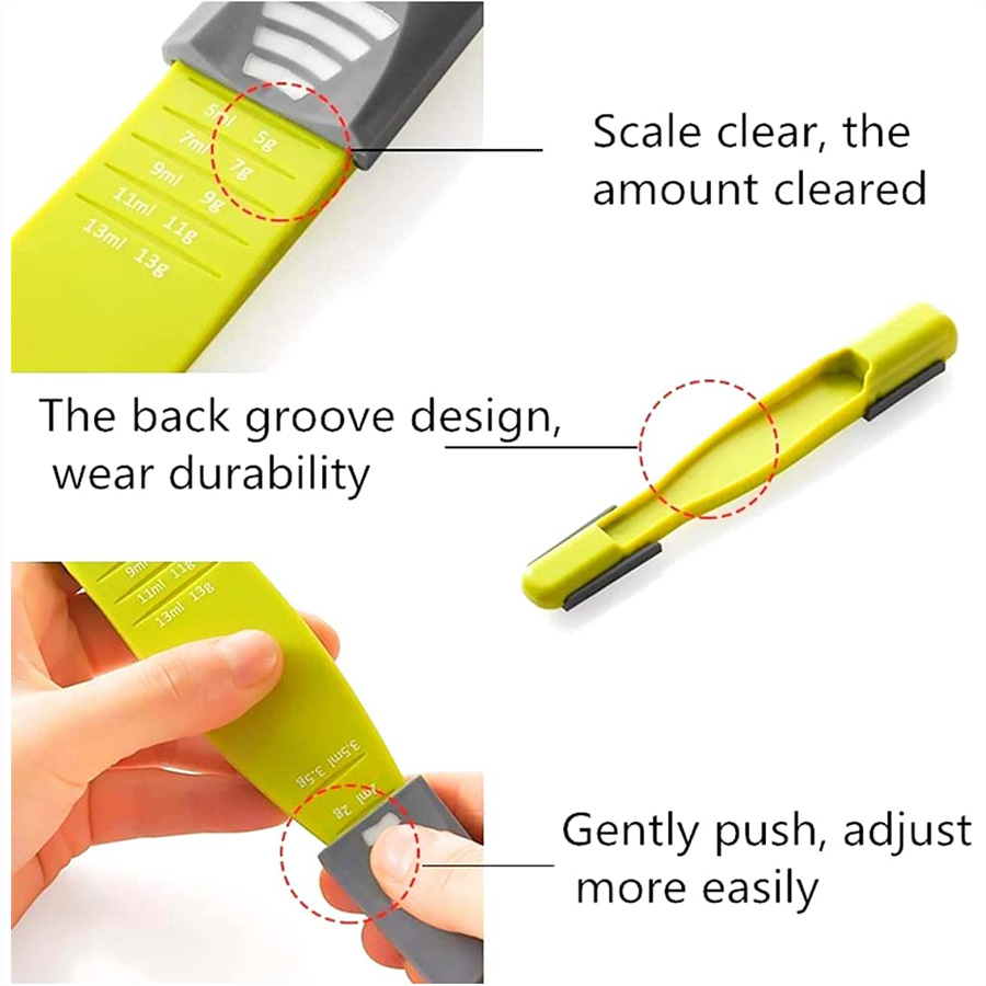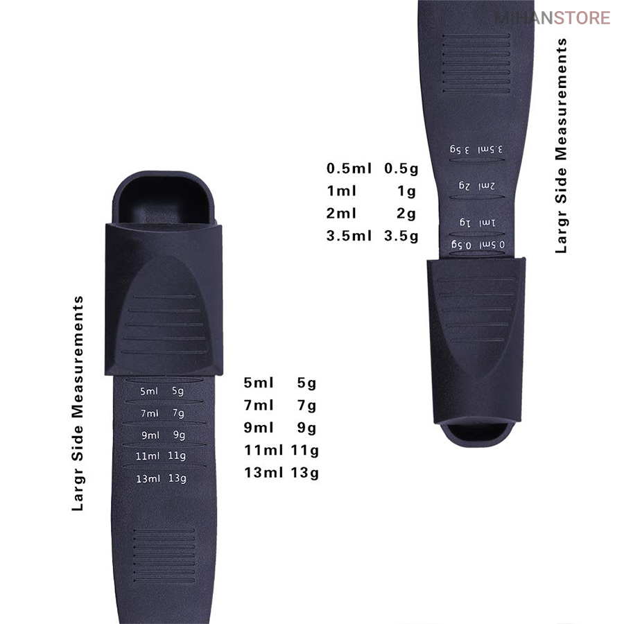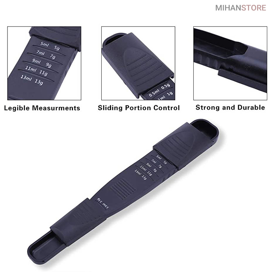 در این قسمت شما را با قاشق اندازه گیری پیمانه دو طرفه Spoon آشنا میکنیم این وسیله در آشپزی کاربرد زیادی دارد و برای اندازه‌گیری مواد اولیه از آن استفاده می‌شود. این پیمانه براساس یک واحد رسمی در پخت و پز شناخته شده و وسیله بسیار دقیقی در دستورالعمل غذاهاست. تمام سایز های مورد نیاز در یکجا فقط کافیه مخزن روی قاشق را با انگشت به صورت کشویی بالا و پایین ببرید تا به معیار مورد نظر برسید. از جنس پلاستیک درجه یک ساخته شده است ، شستشوی این پیمانه ها بسیار راحت می باشد و فضای خیلی کمی را اشغال می کند چون  پیمانه اندازه یک قاشق است پس از این نظر خیالتان راحت است که فضای زیادی را اشغال نمی کند. از این محصول برای اندازه گیری مایعات و دارو ها نیاز می توانید استفاده کنید.