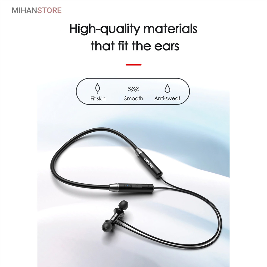 هندزفری بلوتوث گردنی Lenovo یک هندزفری بلوتوث گردنی می‌باشد که دارای کیفیت موسیقی و مکالمه بسیار خوب نسبت به قیمتش می‌باشد. در ضمن بسیار سبک و راحت مناسب استفاده طولانی مدت است. این هدفون گردنی از استاندارد ضد آب IPX5 برخوردار می‌باشد از این‌رو یک هندزفری ورزشی نیز به حساب می‌آید. به معنای دیگر شما می‌توانید از این هندزفری بلوتوث گردنی در ورزش یا زیر بارش باران نیز استفاده کنید. مخصوص علاقه مندان به ورزش که دوست دارند در حال دویدن و پیاده روی به موسیقی نیز گوش دهند. این هدفون به صورتی طراحی شده تا در استفاده‌ دراز مدت گوشتان را اذیت نکند. یکی از دلایل این ویژگی وزن سبک این مدل است. نوار گردنی هدست که در پشت گردن قرار می‌گیرد که باعث می‌شود بدون ایجاد مزاحمت شما به کارهایتان برسید و موسیقی گوش دهید. روکش روی ایرفون‌های هندزفری قابل جدا شدن است. این هدست مجهز به واحد درایور 10 میلی متر برای ایجاد باس عمیق و همچنین آواز نرم است. هدفون بی سیم لنوو دارای تراشه بلوتوثی نسخه 5.0 است که از طریق آن به گوشی، تبلت و یا لپ تاپ متصل می‌شود. برای این مدل بلوتوث نسخه 5.0 در نظر گرفته شده و برد بلوتوث این هدفون تا 10 متر محاسبه شده است. یک باتری 105 میلی آمپرساعت درون این هدست به کار رفته است که با یکبار شارژ می تواند 8 ساعت موزیک پخش کند.  این هدست تا 120 ساعت نیز می‌تواند در حالت آماده به کار باشد. گفتنی است که در هنگام مکالمه هم تا 8 ساعت شارژ را نگه می‌دارد. یکی از دلایلی که این مدل را برای استفاده هنگام ورزش مناسب کرده، گواهی IPX5 است. این گواهی باعث شده تا این مدل نسبت به آب و رطوبت مقاوم باشد. این مدل به گردنی مجهز شده و این ویژگی باعث شده تا این هدفون از گوشتان نیافتد. هندزفری بلوتوث گردنی Lenovo صداهای موسیقی را در صورت استریو بودن برای شما stereo (دو کاناله) پخش می‌کند. در مجموع باید گفت صدای این هندزفری بلوتوث گردنی گرم و لذتبخش است.