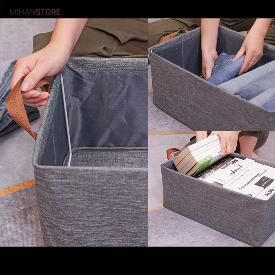 باکس لباس و شلوار داخل کمد یک جعبه پارچه ای بسیار مقاوم اما سبک و کم حجم به شکل مستطیل با ابعاد طول 40، عرض 25 و ارتفاع 24 سانتی‌متر می‌باشد که دارای اسکلت داخلی جمع شونده است که علاوه بر حفظ شکل ظاهری باکس، استحکام بیشتری نیز ایجاد می‌نماید.  باکس لباس و شلوار داخل کمد با ارتفاع مناسبی که حین باز کردن آن وجود دارد می‌توان حجم قابل توجهی از لباس و پیراهن و شلوار را در داخل خود جای دهد.  در صورت عدم استفاده از این باکس لباس اسکلت دار هیچ محدودیتی بابت جمع کردن و قرار دادن آن در جای مناسب نخواهید داشت و به گونه ای است که به راحتی تا می‌شود و می‌توانید آن را در کشو و قفسه بگذارید.  همچنین جنس پارچه ای ضخیم با قابل شستشو، مقاومت در برابر چروک، ساییدگی، پوسیدگی و تغییر رنگ از دیگر محسنات این باکس است. جنس این کالا پارچه برزنتی درجه یک ضخیم می باشد.