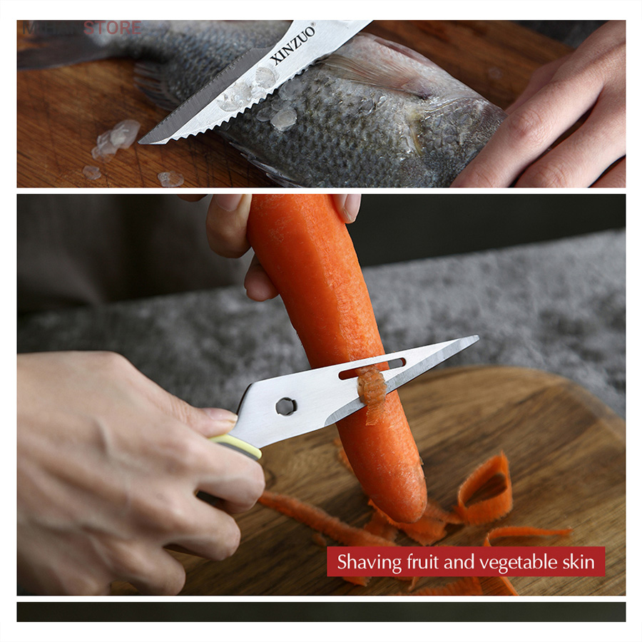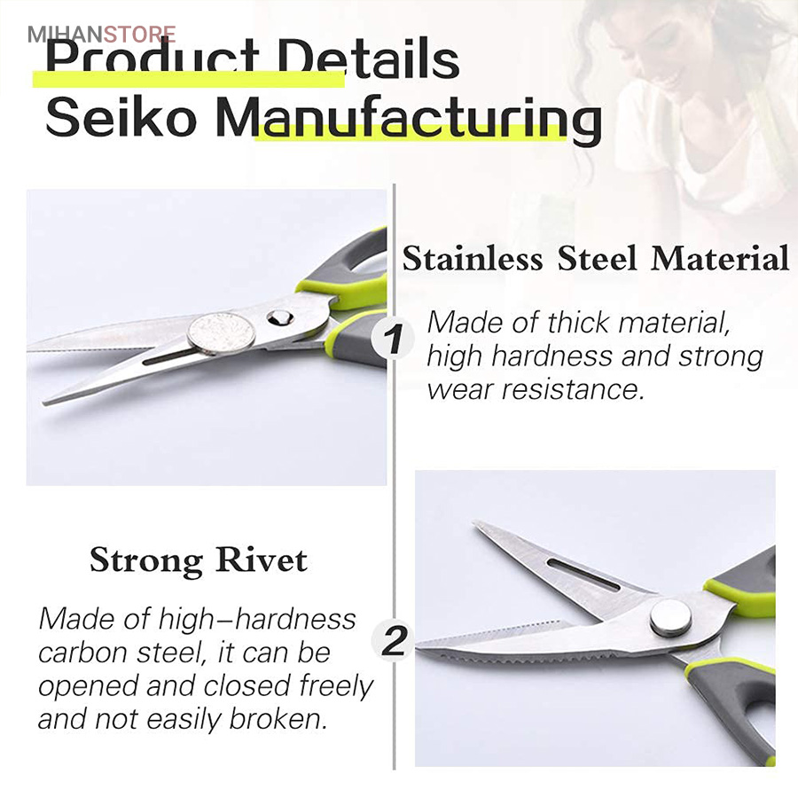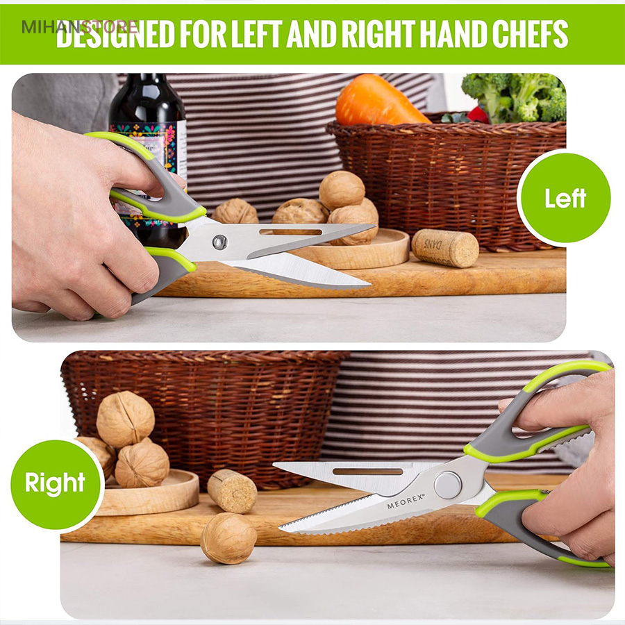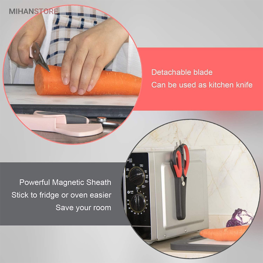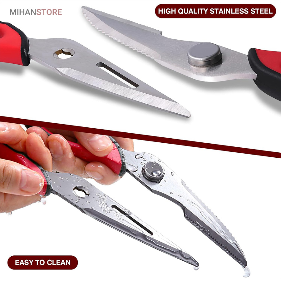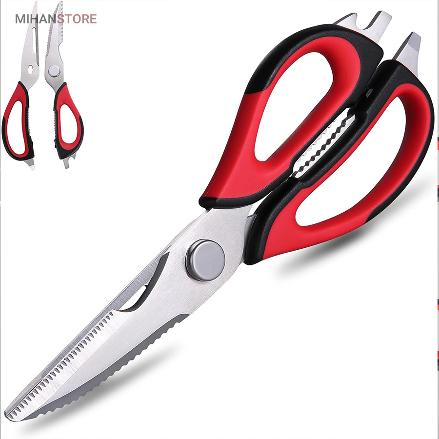 هم قیچی، هم بازکن، هم کابل کش و هم چاقو! این قیچی جادویی 8 کاره باورنکردنی در هر زمینه ای مفید خواهد بود. محصولی کاملاً جدید که باید در کار آشپزخانه خود داشته باشید و کار شما را آسان‌تر می‌کند و نمی‌توانید نزدیک آن باشید. در آشپزخانه می توانیم هنگام سرو مرغ، سبزیجات را خرد کنیم یا به راحتی استخوان ها را برش دهیم. می توانید از آن به عنوان کرکر فندقی یا گردو استفاده کنید. به راحتی می توانید درب بطری های خود را باز کنید. به طور خلاصه، به لطف قیچی جادویی 8 کاره، کاری که در زندگی روزمره انجام می دهید اکنون کاربردی تر شده است. قابل شستشو در ماشین ظرفشویی می باشد.
