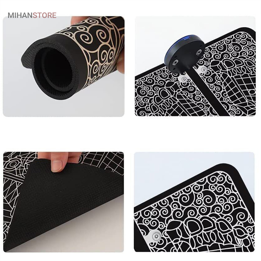 ماساژور هوشمند پا EMS Foot Massager یک پد نرم به نرمی پد یوگاست ولی بسیار باریکتر که توسط باتری موجود در کنترل آن امواج مغناطیسی را به کف پای شما میفرستد. کف پا را به تخصصی ترین شکل ممکن ماساژ میدهد. این ماساژور تاشو بسیار سبک و قابل حمل می باشد. باتری آن با کابل USB که بهمراه پد تقدیم شما میشود شارژ میشود. این پد که از جنس پد یوگاست به راحتی با دستمالی نم دار و به راحتی قابل تمیز شدن است. با کمک این پد بی صدا به آرامشی بی نظیر در کف پای خود خواهید رسید. چرا که این پد از کف پا با به گردش در آوردن خون در رگها و به حرکت در آوردن عصب ها پای شما را تا قسمت ران ها ماساژ خواهد داد. ماهیچه های خواب رفته و ضعیف را قوت میبخشد.برای برآوردن نیازهای مختلف ماساژ، تکنیک‌های شبیه‌سازی هوشمند ماساژ مصنوعی با توجه به ترجیحات شخصی و استرس فیزیکی، می‌توانند آزادانه از درجات شدت مختلف و حالت های مختلف به دلخواه انتخاب و تنظیم کنید.برعکس برخی ماساژور سنتی پا که وزن سنگینی دارند، این محصول فقط یک پد نرم و راحت برای پا است. سبک و تاشو با امکان حمل آسان در هر مکانی است. این ماساژور پا از مواد نرم مناسب یوگا و سطح چرمی ساخته شده است و با استفاده از حوله مرطوب قابل خشک شدن است. کاملا بی صدا است می توانید هنگام تماشای تلویزیون، مطالعه، کار در دفتر یا استراحت از آن استفاده کنید.با تکنولوژی EMS،گردش خون را در پاها و ساق پا بهبود می بخشد.بر خلاف ماساژورهای معمولی پا، ماساژور پا EMS بسیار ملایم است و برای انواع پوست مناسب است.این دستگاه برای افرادی که به باشگاه می روند، افرادی که مسافت های طولانی را طی می کنند، افرادی که اغلب دوچرخه سواری می کنند، می رقصند، از کوه ها بالا می روند و افرادی که دوست دارند کفش پاشنه بلند بپوشند، مناسب می باشد. همچنین برای مسافران، افراد میانسال و سالخورده، افرادی که دارای شغل اداری هستند مناسب است. ماساژ منظم پا به شما کمک می کند تا با خستگی های روزانه خود مقابله کنید. این دستگاه پاهای شما را در یک روز پر کار آرام کرده و خستگی انباشته را از بین می برد. ماساژور الکتریکی پا با ورود پالس ها به زیر غشاء پوستی خطوط عصبی را تحریک می کنند تا به طور خودکار با هم تعامل کنند و آرامش را به پا های شما بازگرداند.