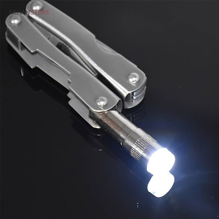 بسیاری مواقع در طول روز یا زمان سفر، به ابزار بسیار ساده‌ای مانند پیچ‌گوشتی، چاقو و… نیاز پیدا می‌کنید؛ ولی قطعا هیچ‌کس نمی‌تواند همه‌ی این ابزارها را در کنار خود داشته باشد. در چنین شرایطی یک مجموعه‌ابزار، بسیار کارآمد خواهد بود. این محصول ۷ ابزار با ۹ عملکرد دارد. از ابزارهای داخلی این محصول می‌توان به «در بطری باز‌کن» اشاره کرد که برای بازکردن در بطری نوشابه به شما کمک می‌کند. همچنین این محصول یک «تیغه چاقوی کوچک» دارد که برای آشپزی در زمان سفر کاربردی است. از دیگر ابزارها می‌توان به «اره» اشاره کرد که تقریبا تیز است و برای کارهای ظریف استفاده می‌شود. یک «پیچ‌گوشتی چهارسو» نیز در این مجموعه لحاظ شده است تا بتوان در صورت لزوم، با خیالی راحت از آن استفاده کرد. بدون شک کاربردی‌ترین ابزار این مجموعه «چراغ‌قوه‌» است. این چراغ‌قوه به صورت پیچی روشن و خاموش می‌شود و نور مناسبی برایتان تولید می‌کند. اصلی‌ترین ابزار این وسیله «انبردست» است که به‌نسبت اندازه‌اش، قدرت مناسبی دارد. قسمت پایینی انبردست نیز به دلیل تیغه‌هایی که دارد، مانند سیم‌چین عمل می‌کند. برای اینکه بتوانید این محصول را با راحتی بیشتری حمل کنید، کیف کوچکی نیز همراه آن عرضه شده است.