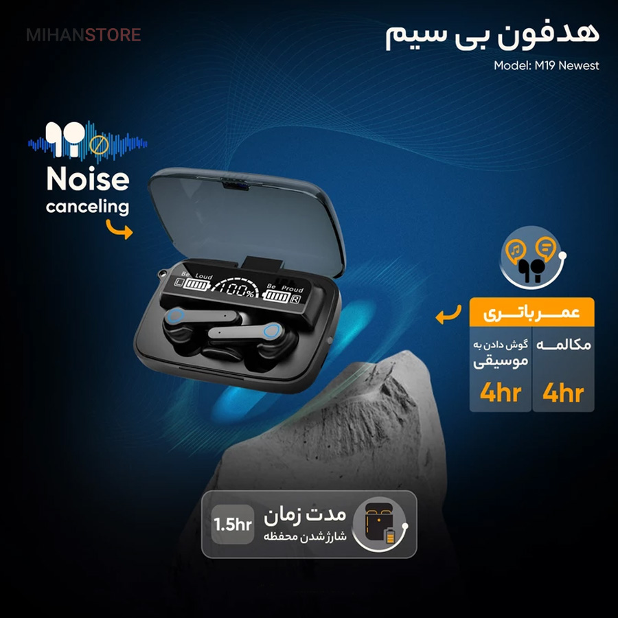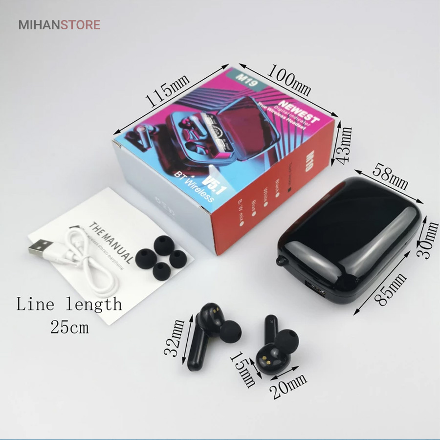 اگر به دنبال هندزفری بیسیم جمعوجور هستید، هندزفری بلوتوثی مدل M19 Newest یکی از گزینههایتان است. این مدل برخلاف ایرپاد بهصورت کامل در گوشتان قرار میگیرد. این محصول دارای محفظه با ابعاد استانداردی است و بهآسانی در جیب و کیفتان جای میگیرد. محفظه شارژ مجهز به باتری قدرتمند 1600mAh است که تا ساعت ها میتوانید از آن استفاده کنید یا به عنوان پاوربانک برای شارژ گوشی بهره ببرید. همچنین این محفظه دارای نشانگر LED زیبا برای نمایش میزان شارژ محفظه و هریک از گوشی هاست. اتصال این هندزفری به گوشی از طریق بلوتوث امکانپذیر است. برای این محصول بلوتوث نسخه 5 تعبیهشده تا برقراری ارتباط کیفیت بالایی داشته باشد.فاصله اتصال 10 متری ، عملکرد پایدار ، انتقال زیاد ، مصرف کم و سازگاری قوی را به شما اراءه میدهد. اگر قصد دارید از این مدل بدون محفظه استفاده کنید، تا 4 ساعت این محصول قابلیت پخش موسیقی را به شما میدهد. در صورت استفاده از محفظه شارژ این میزان تا 12 ساعت افزایش مییابد. زمان مکالمه 4 الی 6 ساعت و زمان شارژ محفظه 1.5 ساعت می باشد. این هندزفری دارای استاندارد IPX-7 بالاترین سطح ضد آب بودن است. استفاده از فناوری کاهش صدای دیجیتال.از لحاظ ارگونومیک با طراحی خوب براحتی در گوش قرار میگیرد.