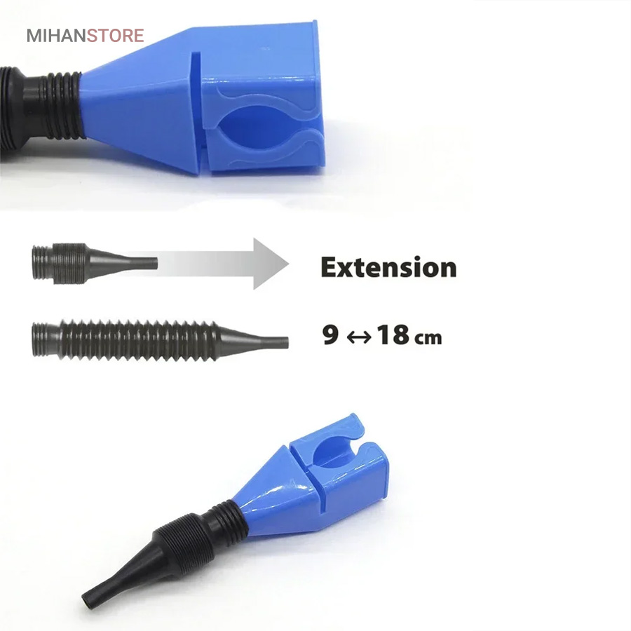 قیف خرطومی همه کاره ساخته شده از پلاستیک، قابل استفاده مجدد، انعطاف پذیر، سبک وزن و قابل حمل. قیف پلاستیکی ما با گردن پهن و دهانه پهن است که می تواند به سرعت مایع را بدون ریختن پر کند. بخش متصل شونده منعطف و قابل اتصال به انواع پت (شیشه نوشابه یک بار مصرف ) و گالن تا قطر 6 سانتیمتر می باشد و یک عدد لوله خرطومی با طول 20 سانتی و با دهانه خروجی 1 سانتی متر و کاملا قابل انعطاف به آن متصل است. برای تخلیه روغن، بنزین و آب از اتومبیل، کامیون، موتور سیکلت و ... تجهیزات صنعتی مناسب است.