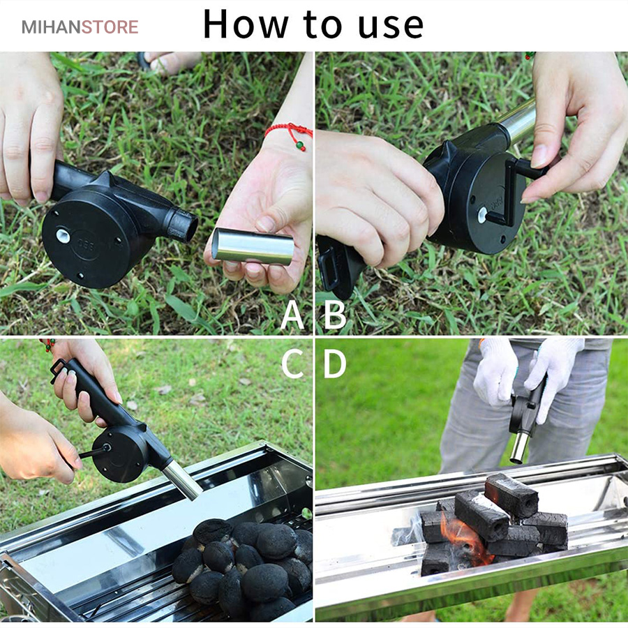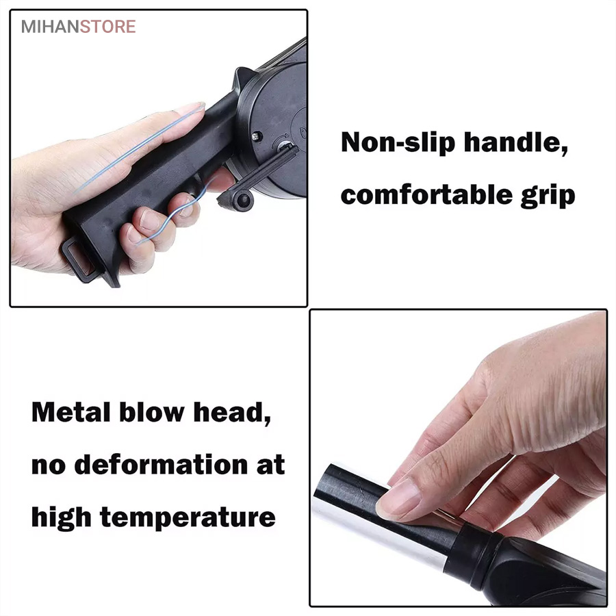 بادبزن دستی باربیکیو روشن کردن منقل و گداخته کردن زغال ها را بسیار راحت می کند. مکانیزم این وسیله بسیار راحت است. کافی است دسته ای که به بدنه بادبزن متصل شده را بچرخانید تا باد از لوله جلویی خارج شود. بادبزن دستی به شکل تفنگ طراحی شده است که علاوه بر زیبایی بصری، بسیار خوش دست است. اندازه بادبزن به گونه ای است که می توانید آن را به راحتی در داشبورد ماشین یا کیف و چمدان قرار دهید.