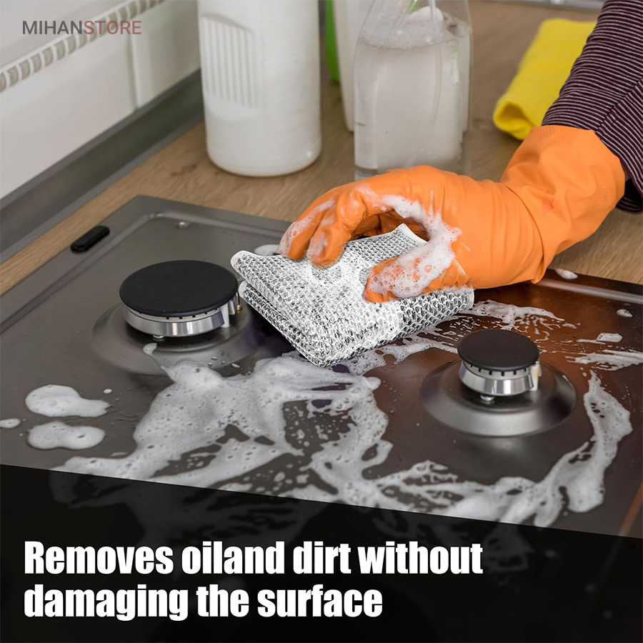 مناسب برای سطوح حساس: اگر نگران ایجاد خش یا آسیب به سطوح حساس مانند اجاق گاز، سینک ظرفشویی یا سطوح شیشهای هستید، این محصول با جنس سیمی آلومینیومی و تراکم مناسب، بدون ایجاد خراش، سطوح را تمیز میکند.