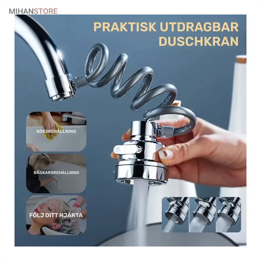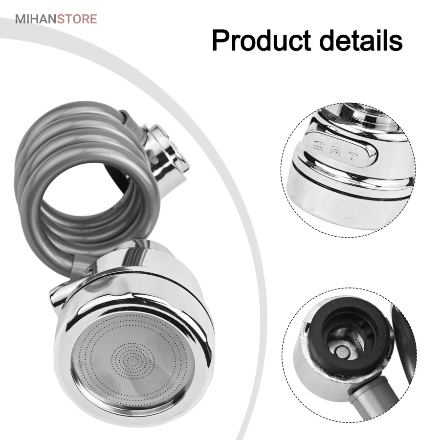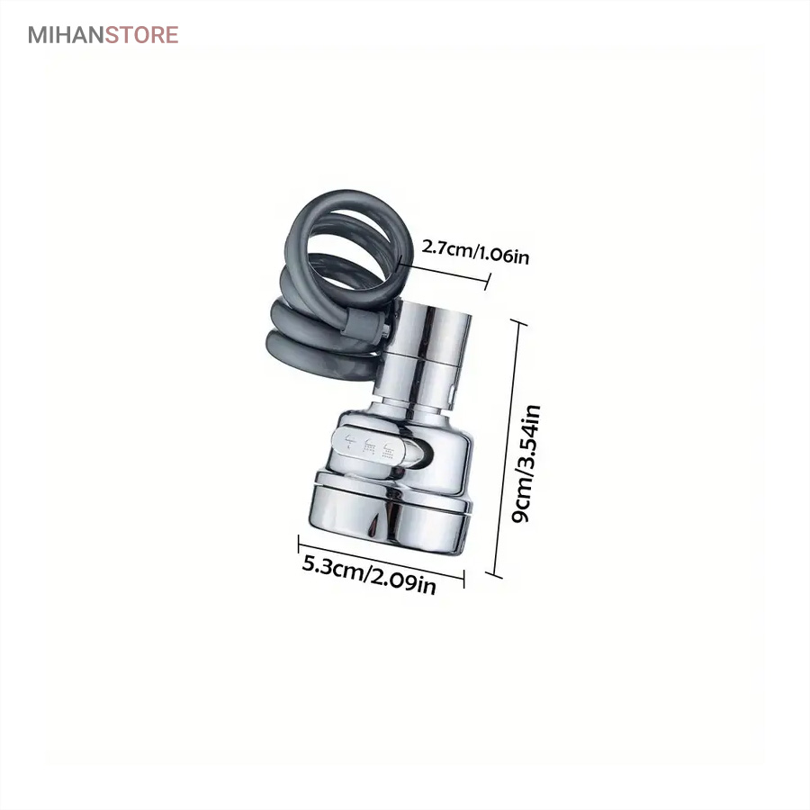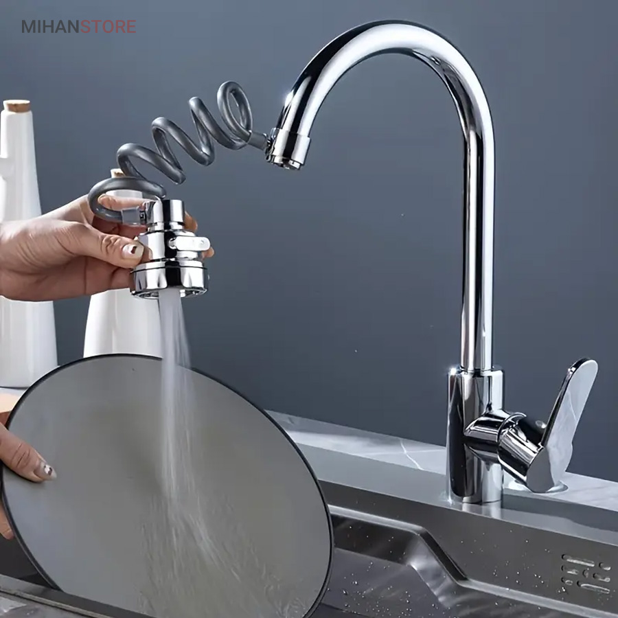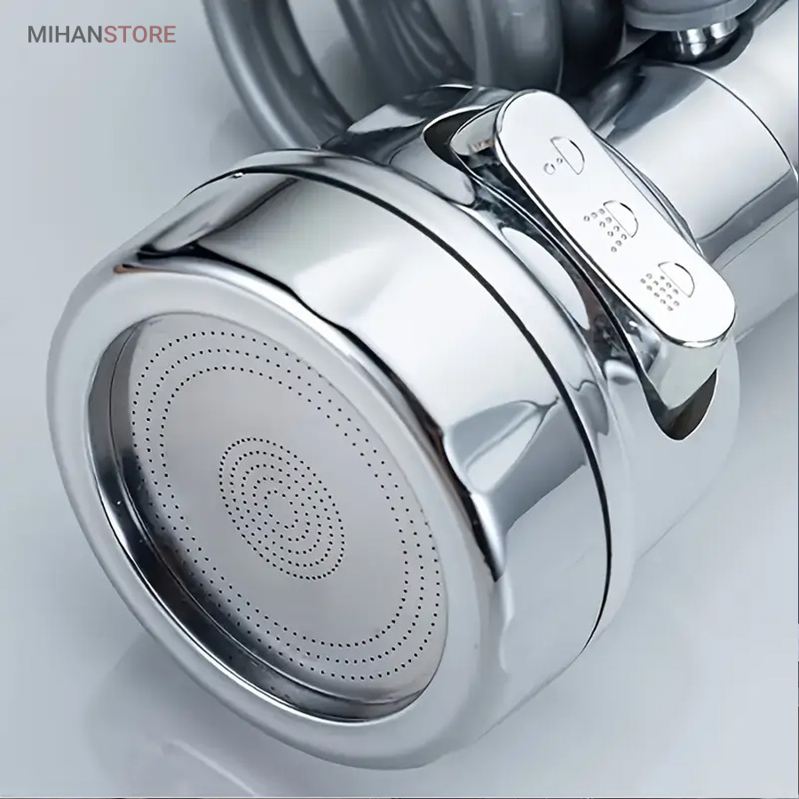با قابلیت چرخش وسیع 360 درجه به وسیله شلنگ فنری و مجهز به 3 حالت پخش آب، قادر است بطور کامل در تمام جهات بچرخد، تا به هر نقطه‌ای از سینک یا روشویی دسترسی پیدا کند و امکان شستشوی راحت را بدهد. این سر شیر آب، با استفاده از ترکیبی از مواد باکیفیت و پلاستیک ABS، عمر طولانی و دوام بی‌نظیری دارد. نکته: سایز قطر این سری شیر آب برای تمامی شیرهای روشویی و آشپزخانه رایج بازار ایران مناسب می‌باشد. با باز کردن صفحه استیل سری شیر امکان تمیزکردن آن میسر می شود.