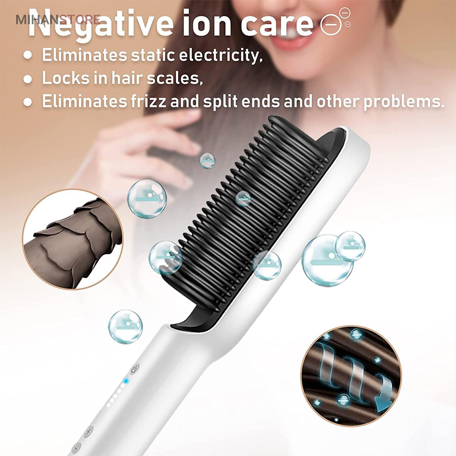 هنگامی که شما تصمیم به استفاده از برس حرارتی گرفته اید بهتر است بدانید که چندین مزایای مختلف را شامل شده اید. مانند: استفاده ی راحت و آسان، وقت گیری کمتر و صافی مو در کوتاه ترین زمان ممکن، صاف شدن مو بی آنکه مو وز کند، کاربرد های متفاوت، حمل آسان و از همه ی این موارد مهم تر، آسیب رسانی کمتر به مو!یکی از بهترین کارکرد های برس حرارتی صاف کننده مو STRAIGHT COMB حداقل آسیبی است که به مو می رساند چرا که مانند برس تنها روی موها کشیده می شود و حرارت درست و صحیحی به موها می دهد که باعث سوختن و آسیب رساندن به مو نخواهد شد.
