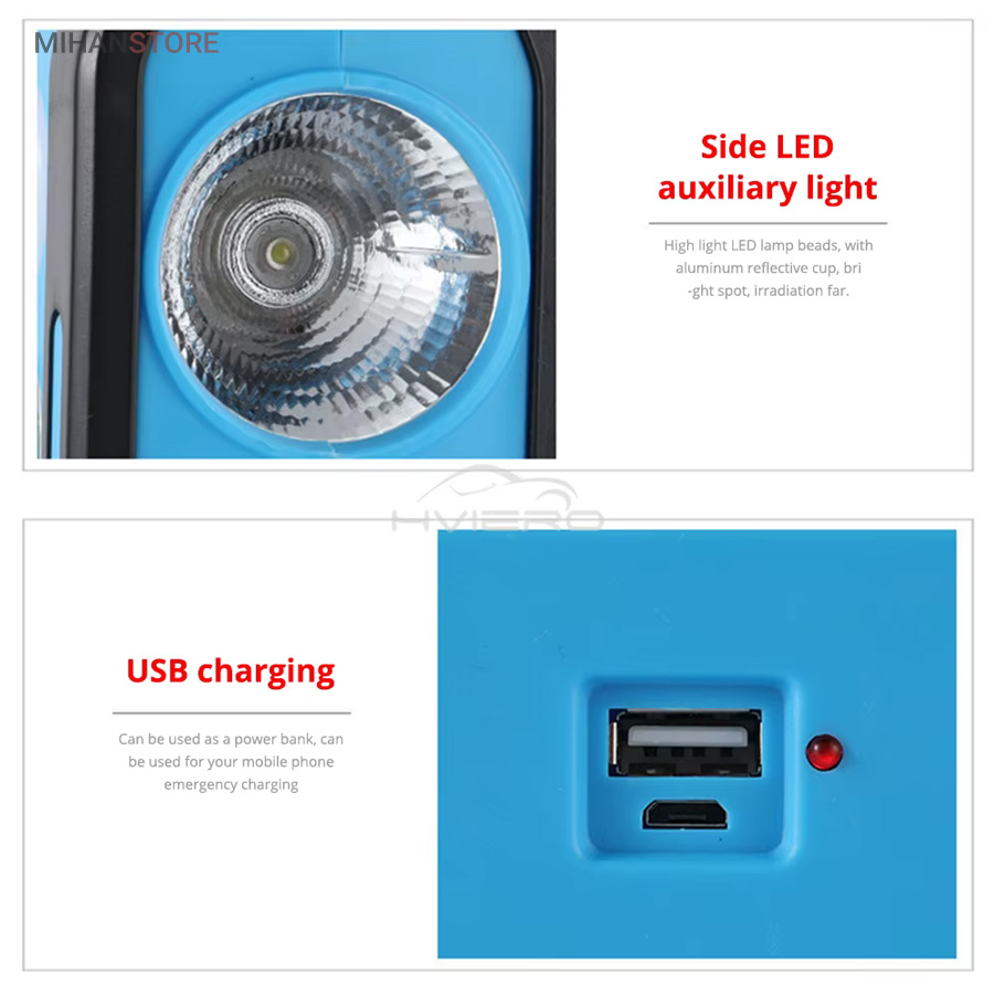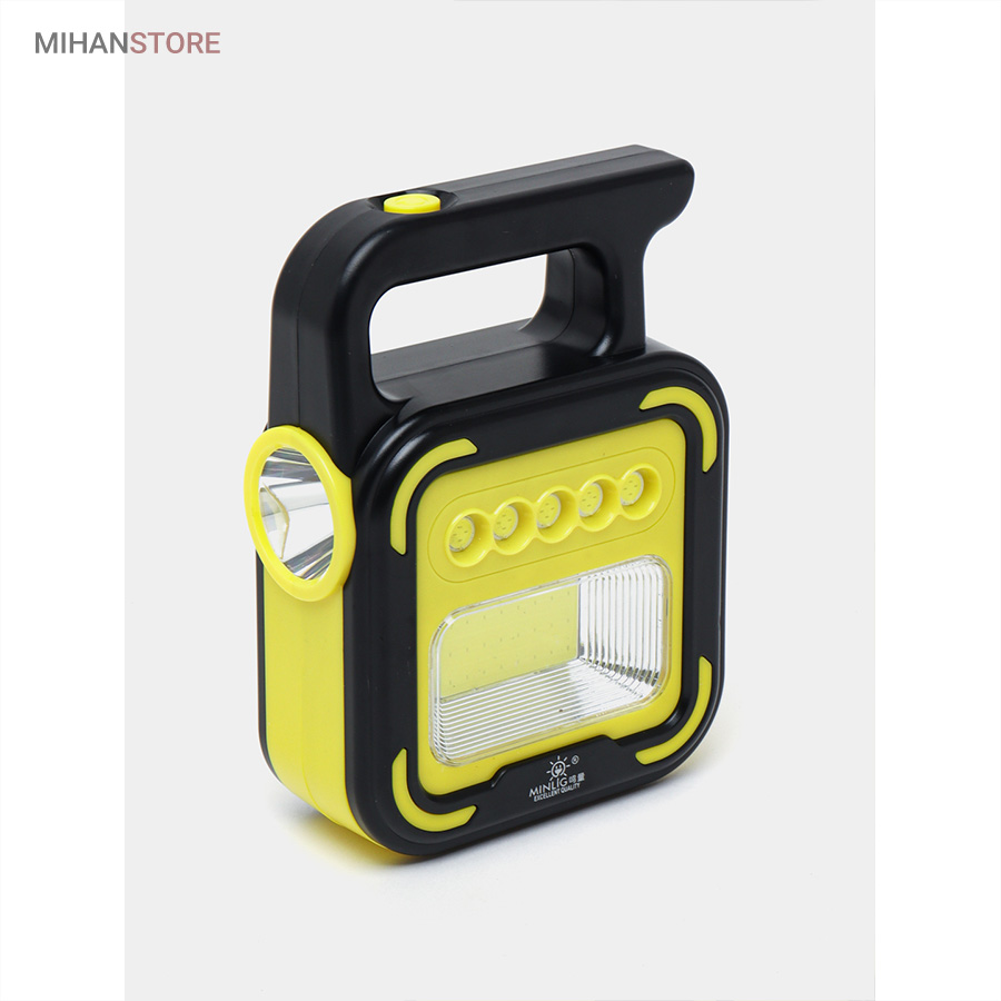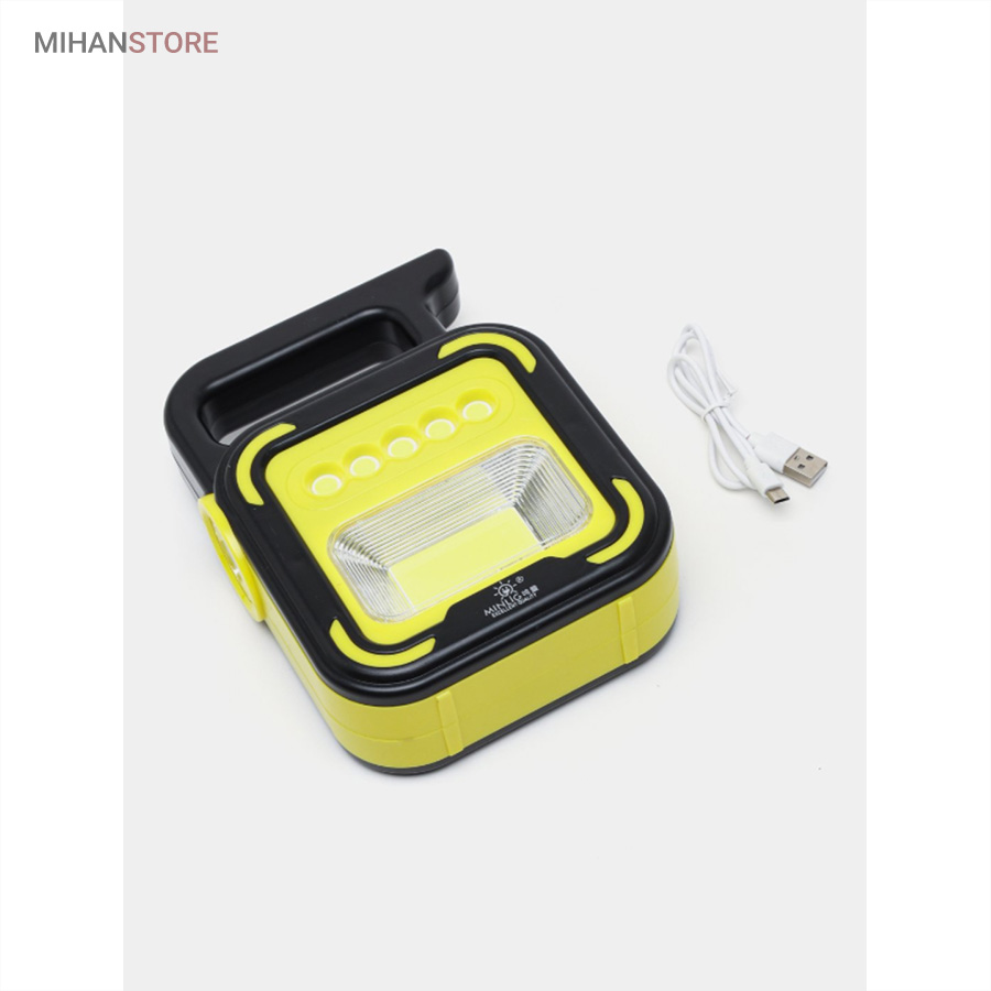 یک وسیله با چندکارایی جالب می باشد. جنس بدنه چراغ کار از ABS و مقاوم در برابر ضربه می باشد. چراغ و پروژکتور اضطراری دارای پاوربانک دارای 4 حالت نوردهی که شامل: چراغ قوه سفید و چراغ قوه آفتابی با نور زرد و چراغ جانبی قوی COB شش چراغه با نور قوی و چراغ جانبی کوچک میباشد. چراغ کار چند کاره دارای ویژگی هایی چون: دست گیره، قابلیت شارژ با برق شهری و نور خورشید، و خروجی USB برای شارژ موبایل می باشد.