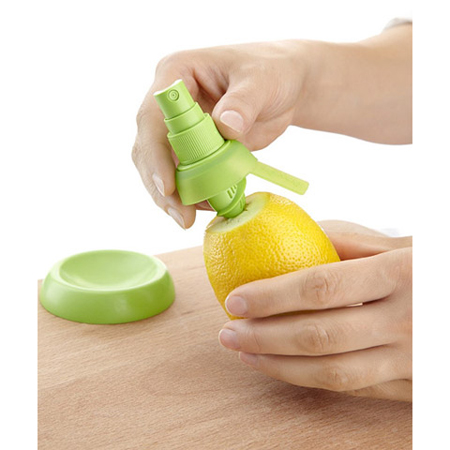 اسپری مرکبات محصول جدید و بی نظیری می باشد که طراحی بسیار مبتکرانه و حرفه ای آن قابل تحسین می باشد! با استفاده از اسپری مرکبات کافیست شما مقداری از پوست لیمو، پرتقال، نارنج و یا ... را بگیرید و اسپری را در داخل آن قرار دهید و سپس به راحتی با اسپری کردن آن آب لیمو یا ... را به صورت طبیعی و بسیار دلچسب استفاده کنید. این محصول به گونه ای طراحی شده است که به آسانی در داخل مرکبات قرار می گیرد و به راحتی قابل اسپری کردن می باشد.