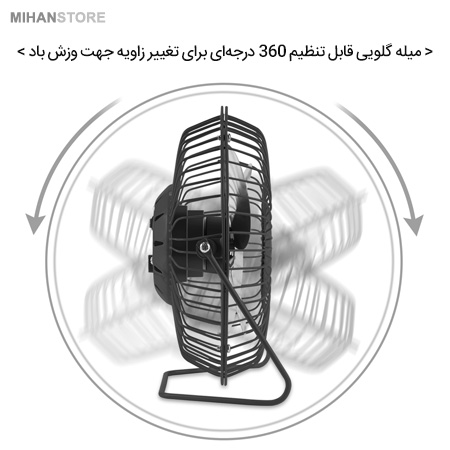 - میله گلویی قابل تنظیم ۳۶۰ درجهای برای تغییر زاویه جهت وزش باد
