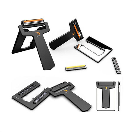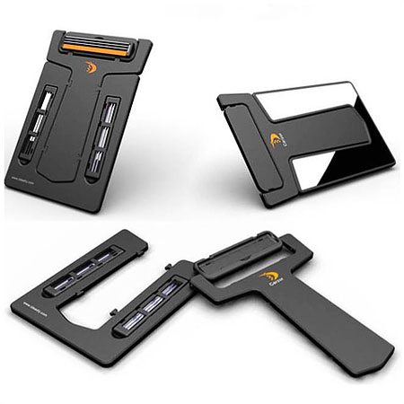 این ریش تراش طوری طراحی شده است که تنها به اندازه یک کارت اعتباری (عابر بانک) جا می گیرد و می توانید آن را به راحتی در داخل کیف پول خود جا داده و در هر مکانی از آن استفاده کنید. تیغه های این ریش تراش بسیار تیز بوده و به صورت سه تایی می باشد که این حالت مدت زمان اصلاح را کاهش می دهد، همچنین در این ریش تراش آینه ای برای مشاهده (قسمت در حال اصلاح) نیز گنجانده شده و برای آسودگی خاطر شما تیغه اضافی نیز در پشت آینه وجود دارد که در صورت کند شدن تیغه اصلی از آن نیز می توانید استفاده کنید. قسمت جالب این ریش تراش وجود خوشبو کننده (در کنار تیغه های این ریش تراش) برای معطر کردن صورت شما هنگام اصلاح است.