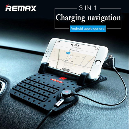 پایه نگهدارنده موبایل Remax از جنس سیلیکون درجه 1 می باشد و کیفیت بسیار بالایی دارد. از این وسیله هم می توانید در خودرو و هم میز کار یا ... استفاده کنید. این محصول دارای پایه های قابل تنظیم مناسب برای نگه داری انواع گوشی ها به صورت افقی و عمودی می باشد. ویژگی دیگر این محصول دارا بودن کابل شارژ برای گوشی های آیفون و اندروید می باشد که شما با استفاده از آن در اتومبیل هم می توانید موبایل خود را شارژ کنید. طراحی پایه نگهدارنده موبایل Remax به گونه ای بوده است که جهت نمایش Navigation (نقشه) هنگام رانندگی بسیار کار را آسان نموده است و دیگر نیاز نیست موبایل را در دست بگیرید و مسیریابی انجام دهید!
