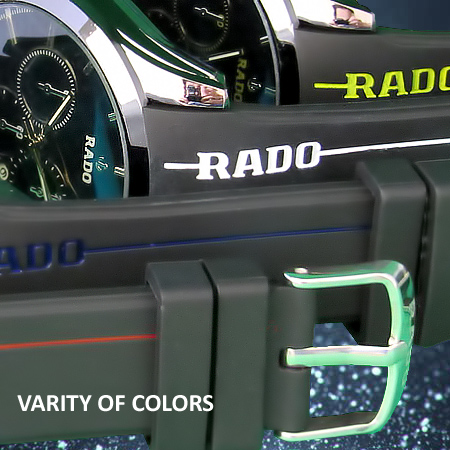 با سلام. کلیات ساعت مشکی است دوست عزیز اما اون خط ها و لوگو رادو با رنگ های زرد ابی قرمز سفید موجود است که هنگام ثبت سفارش در قسمت پیام سبد خرید میتونید ذکر کنید