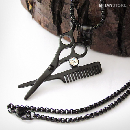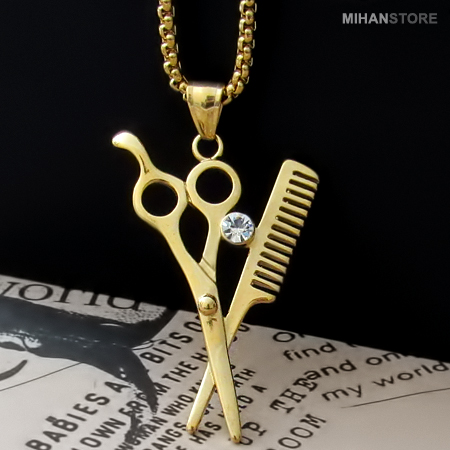 میهن استور - خرید پستی گردنبند لاکچری طرح شانه و قیچی