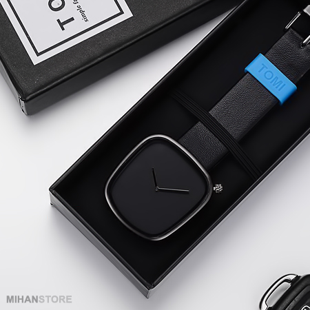 با سلام. دوست عزیز جواب هر 4 سوال شما دقیقا بله هست! رنگ ها موجود - جنس بند مانند تصاویر و اون تیکه آبی با نوشته Tomi است که فوق العاده زیبا کرده است طراحی ساعت رو..
